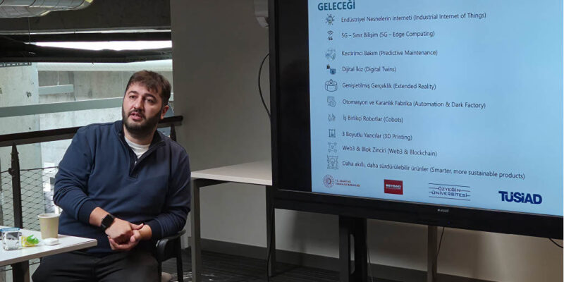 As part of the program, OzUBEX Operations and Analytics Manager Dr. Ahmet Şahin delivered the training on “Artificial Intelligence and the Integration of AI into Production Processes,” while Gizem Aslantepe provided detailed insights into the center’s services, technical infrastructure, and transformation support offerings.